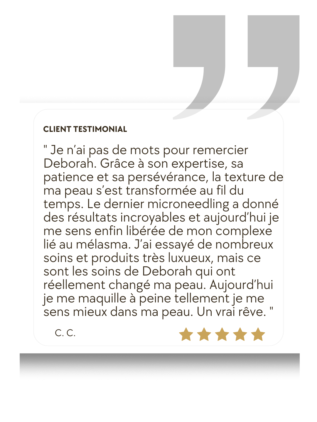 Depuis plus de 20 ans, Deborah accompagne ses clientes dans la compréhension et la transformation de leur peau.